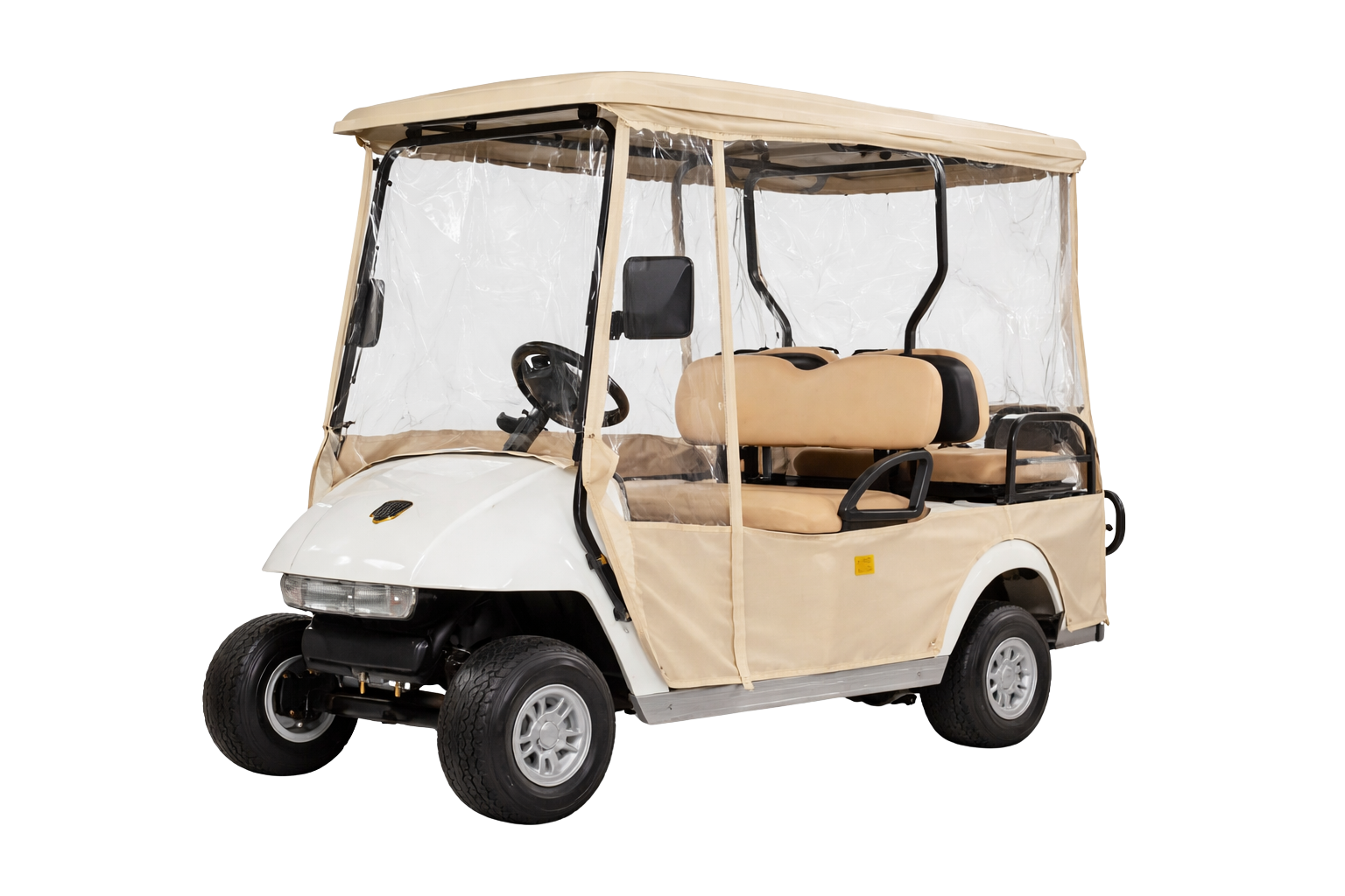 הכיסוי מותקן על מסגרת הקלנועית ומקיף את אזור הישיבה, כך שהנהג נשאר מוגן ונוח גם בימים קרים או גשומים. החלונות השקופים מאפשרים שדה ראייה רחב, והפתחים עם רוכסנים מאפשרים כניסה ויציאה נוחה מהקלנועית.